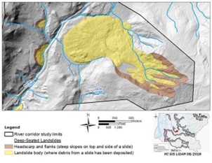 In 2016, the King County Department of Natural Resources and Parks Water and Land Resources Division River and Floodplain Management Section completed a special landslide investigation in coordination with the King County Department of Permitting and Environmental Review to understand what areas along King County river corridors are most vulnerable to landslides. This study was done in response to the Oso landslide that blocked the South Fork Stillaguamish River. For in-depth information about the study, you can read the full report: Mapping of Potential Landslide Hazards along the River Corridors of King County, Washington.