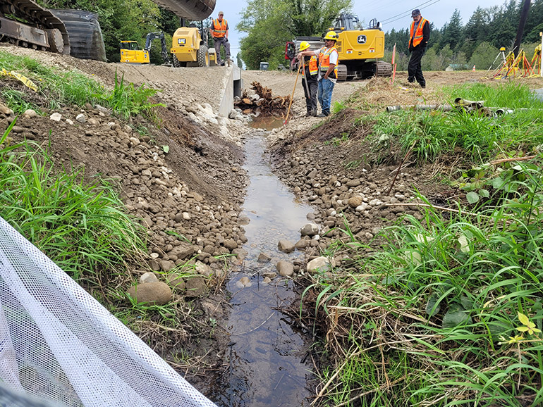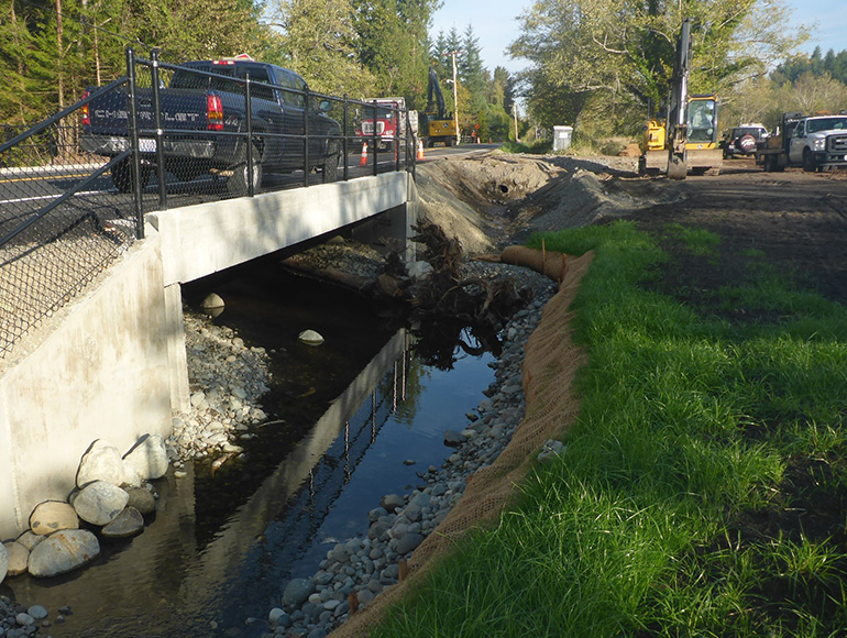The size and design of the concrete culvert is based on state requirements for fish passage design.