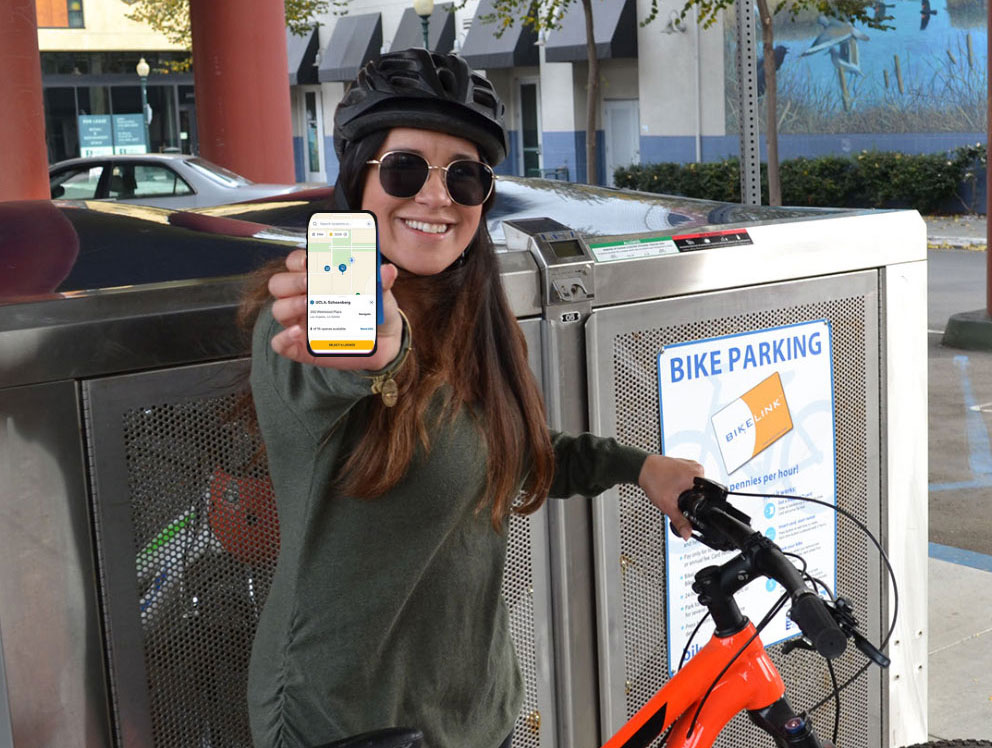 Find a convenient locker or bike cage to store your bike while using transit.
