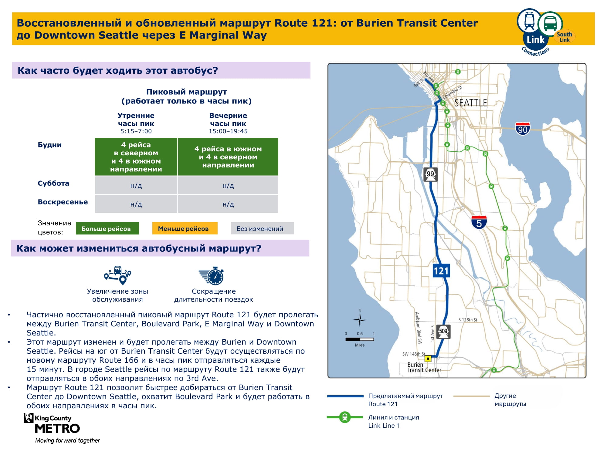 | 121 Обслуживание в городе Burien и центре города Seattle. |