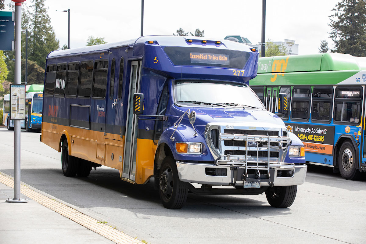Services that use small vehicles or vans carry 2 or 3 bikes. Metro's regular rack loading instructions and rules apply for size, weight, type of bike and accessories. Please contact the specialized services, including DART and Trailhead Direct for more details.