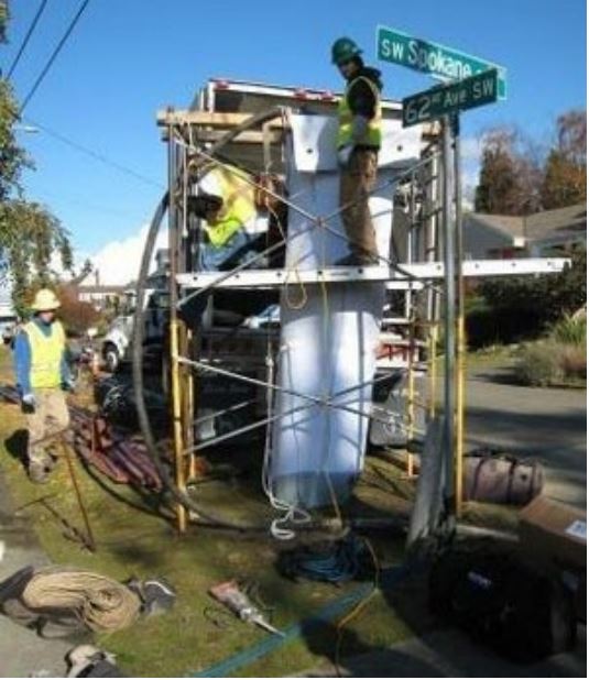 - Repair of corroded sections of the pipeline using a trenchless, below-ground construction lining method called ‘cured in place pipe’ (CIPP).