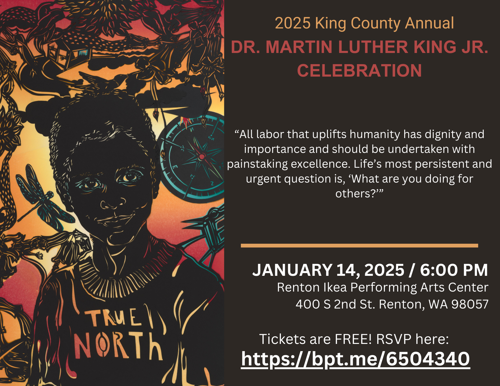 Community members and King County employees are invited to join in honoring our nation’s foremost human rights leader and King County’s namesake, Dr. Martin Luther King, Jr.