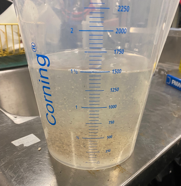 Nuvoda's Mobile Organic Biofilm (MOB) kenaf media settling in clean water