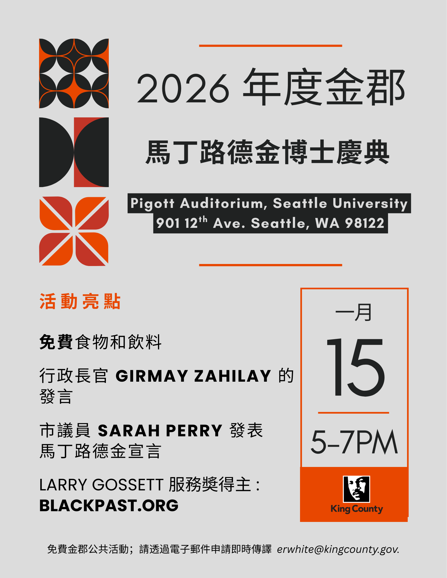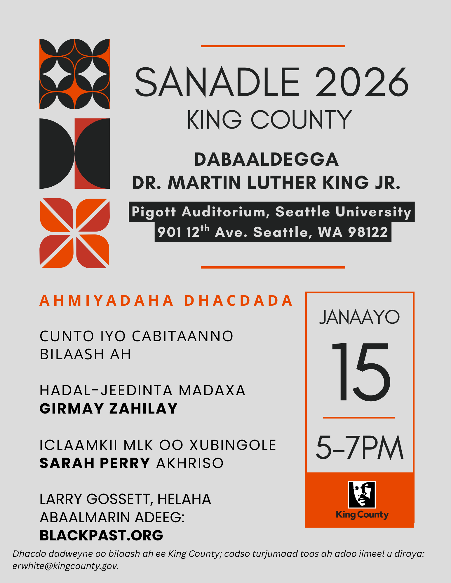 Community members and King County employees are invited to join in honoring our nation’s foremost human rights leader and King County’s namesake, Dr. Martin Luther King, Jr.