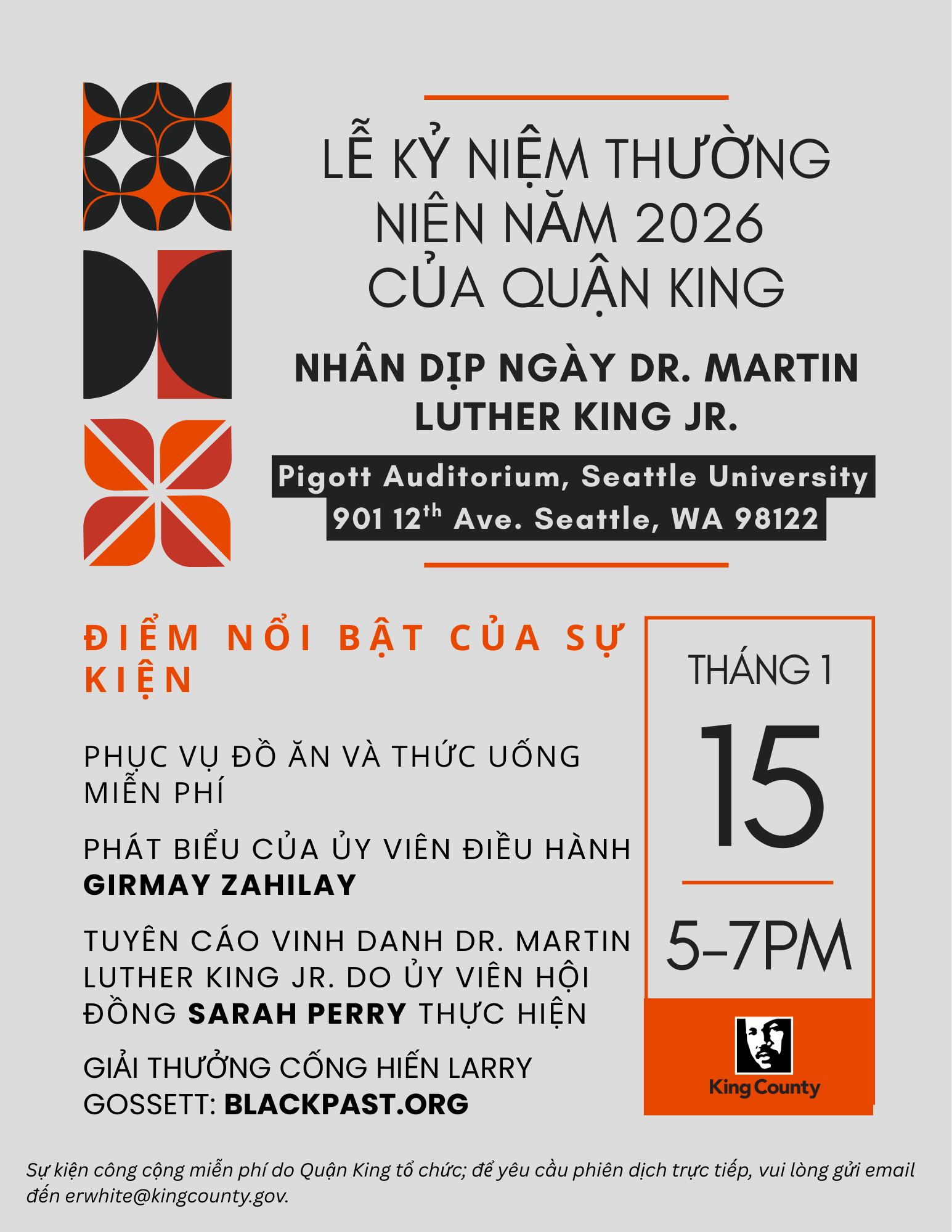 The 2026 Annual Dr. Martin Luther King Jr. Celebration is an event that honors King County's namesake, Dr. Martin Luther King Jr.