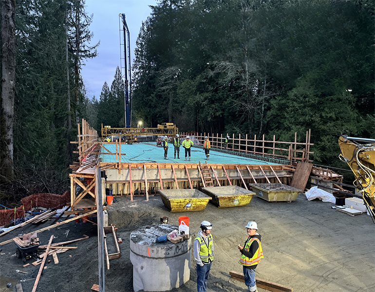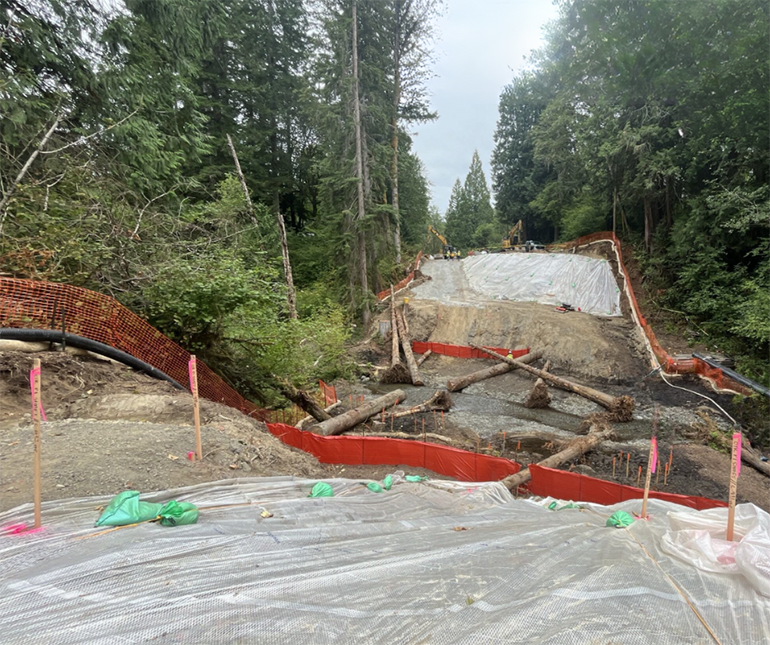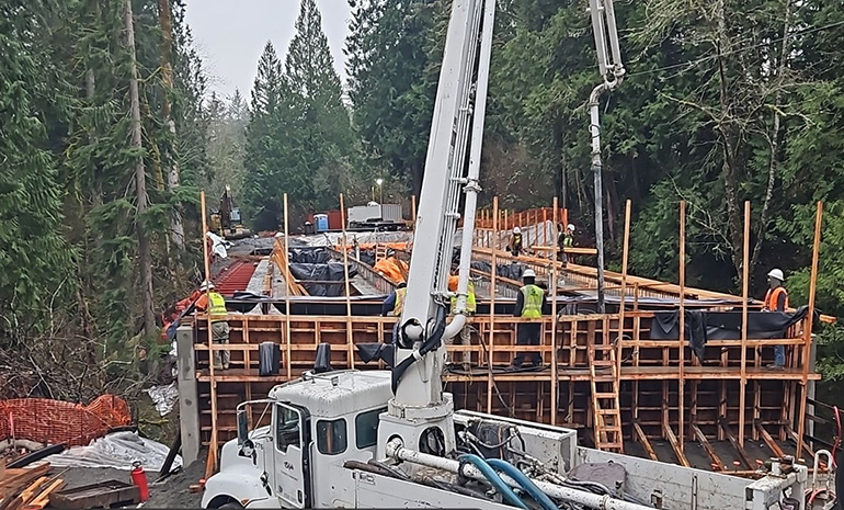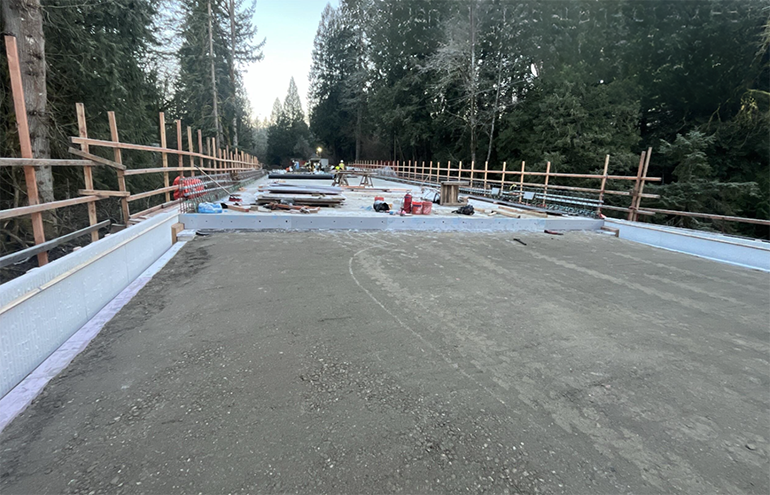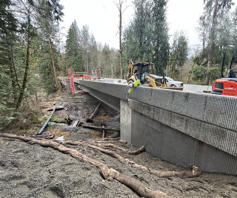 The Ames Lake Bridge opened to the community on April 25, 2025, after a 10-month closure for replacement of the almost 100-year-old trestle bridge. An additional 4-day closure in July 2025 was required to repair bridge expansion joints. The road has now officially reopened to traffic. The crew will return in early fall to add new plantings and continue project cleanup.