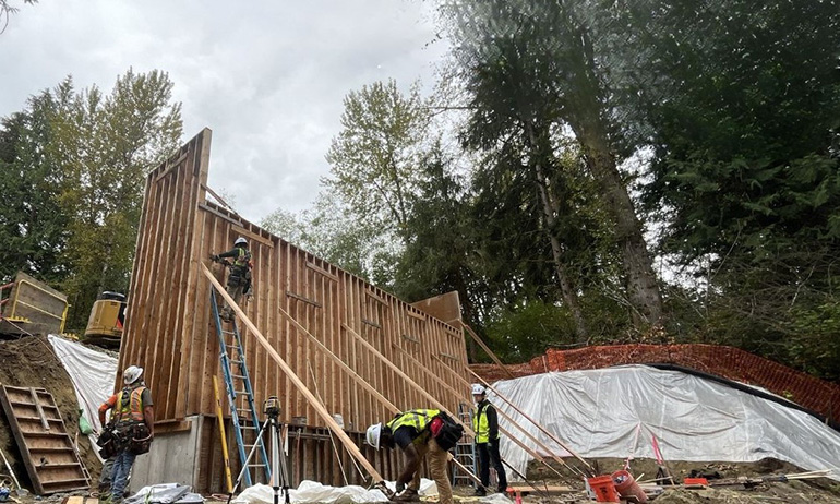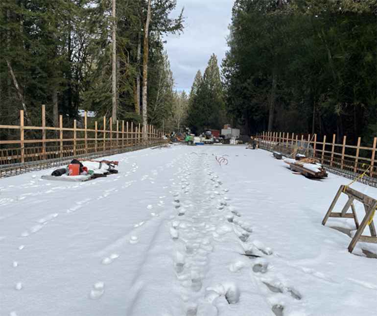 February 2025: Persistent, heavy wet snow paused construction until it melted, and crews could access the ground.