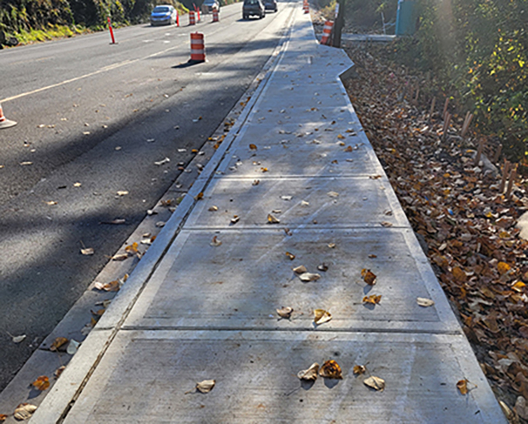 Sept. 23, 2022 – The new sidewall and shoulder is compacted before the new sidewalk is installed.