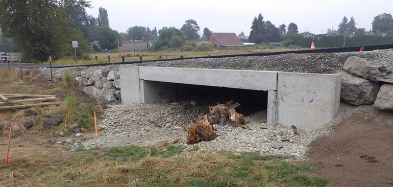 The culvert replacement project is located on SE 384th Street west of 176th Ave SE near Auburn, WA. Crews will remove a four-foot-wide concrete pipe that is too small to handle water during storms. A new much larger concrete box culvert will be installed in its place and will prevent flooding on private property and on nearby roads.