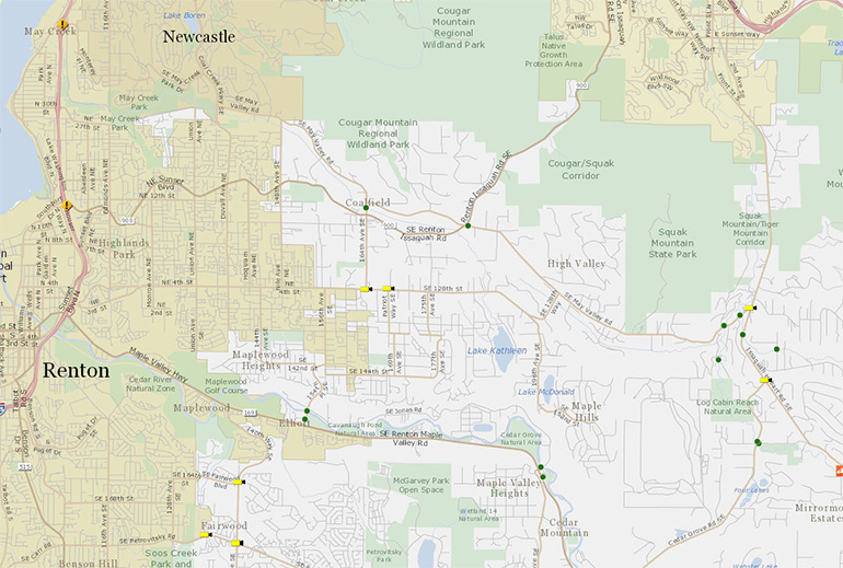 King County and the city of Issaquah are partnering on a study of congestion on Issaquah Hobart Road SE and the major roads that intersect with it including SE May Valley Road. More information is available from the city. Learn more.